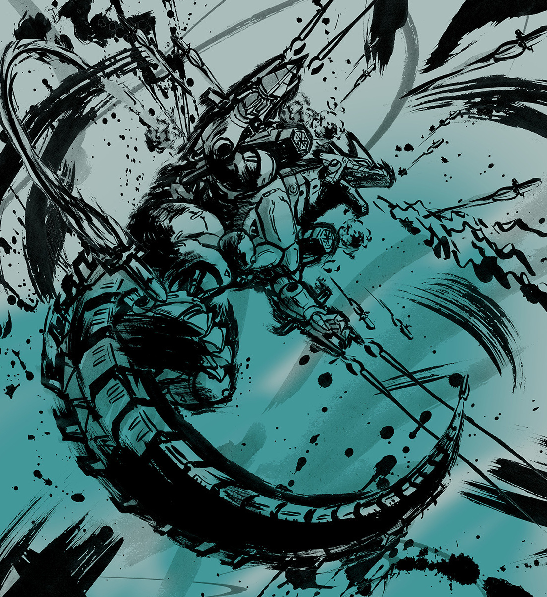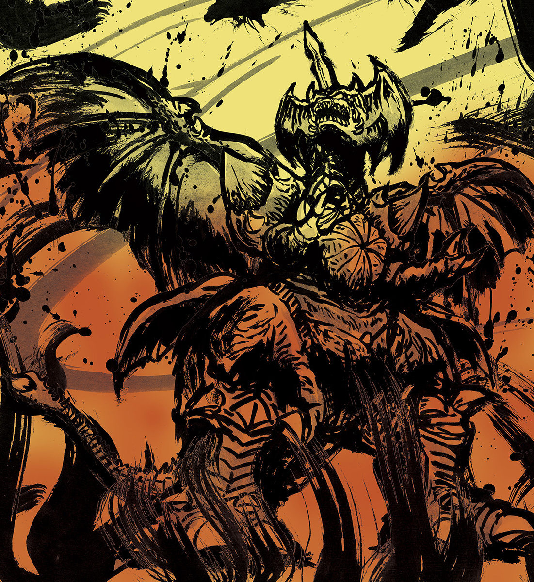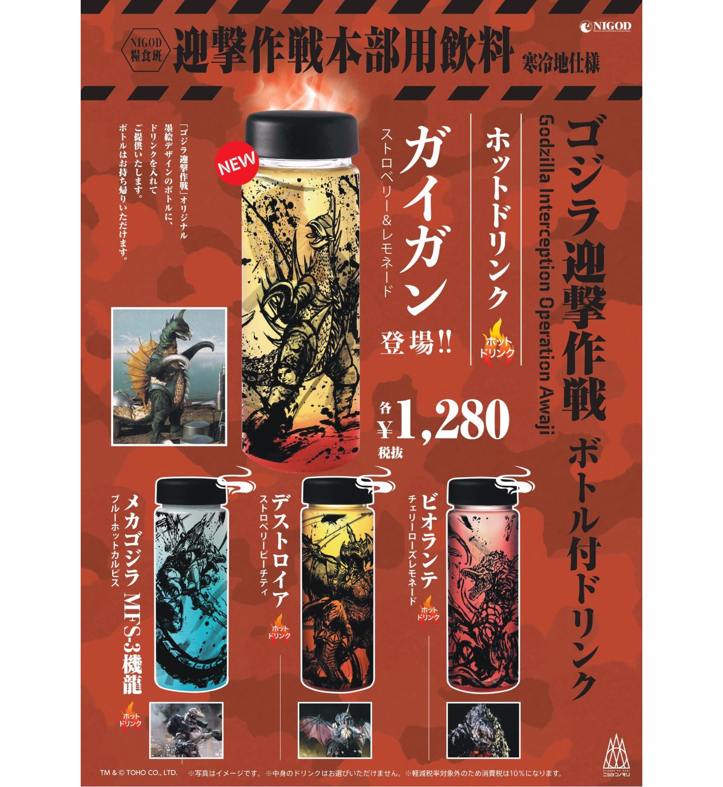 兵庫県立淡路島公園アニメパーク「ニジゲンノモリ」の新アトラクション『ゴジラ迎撃作戦 ~国立ゴジラ淡路島研究センター~ 』内で販売される商品に使用される怪獣の墨絵イラスト。(墨絵イラストのみ作製、パッケージデザインは㈲トレスアミーゴス様)