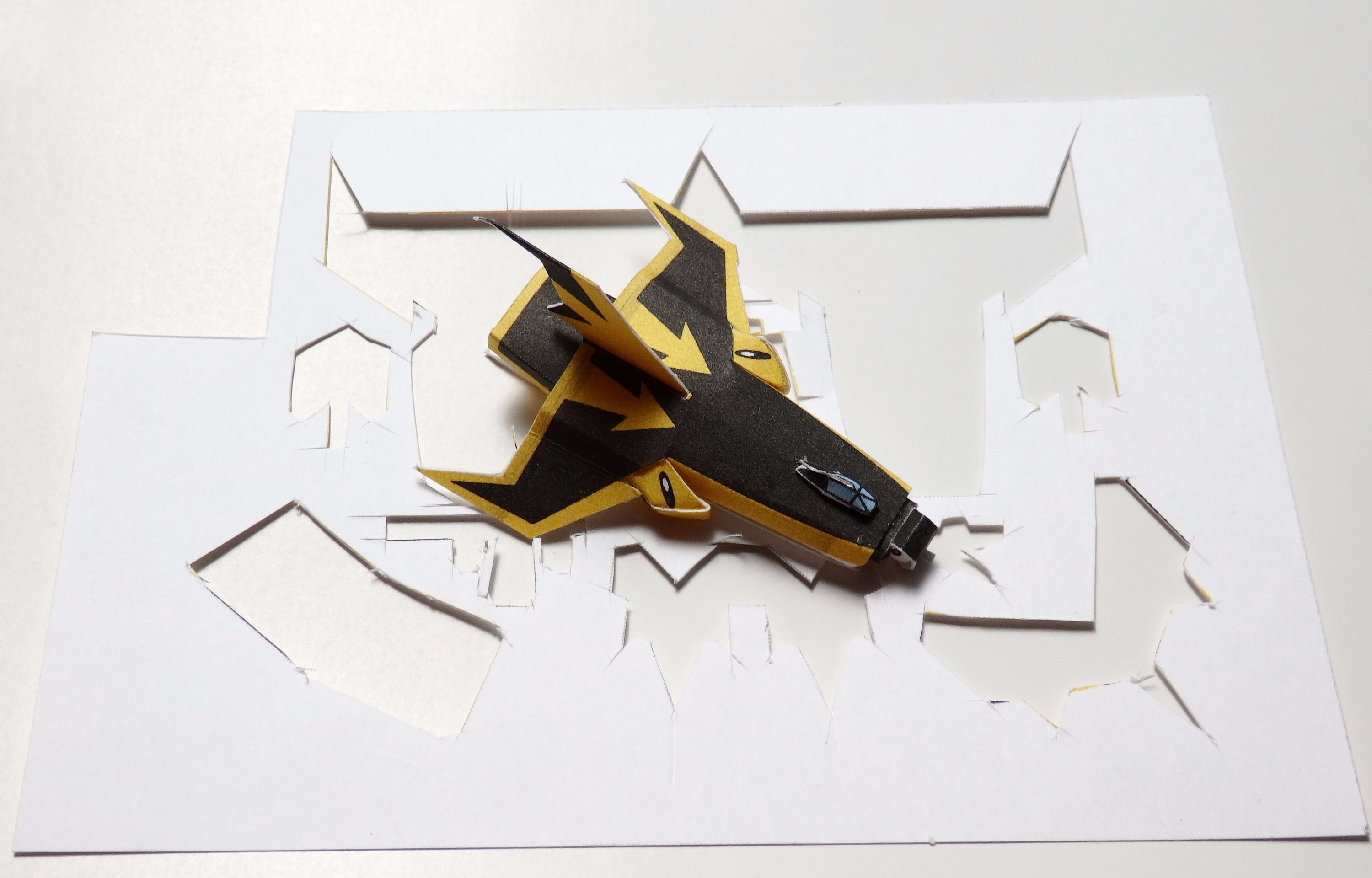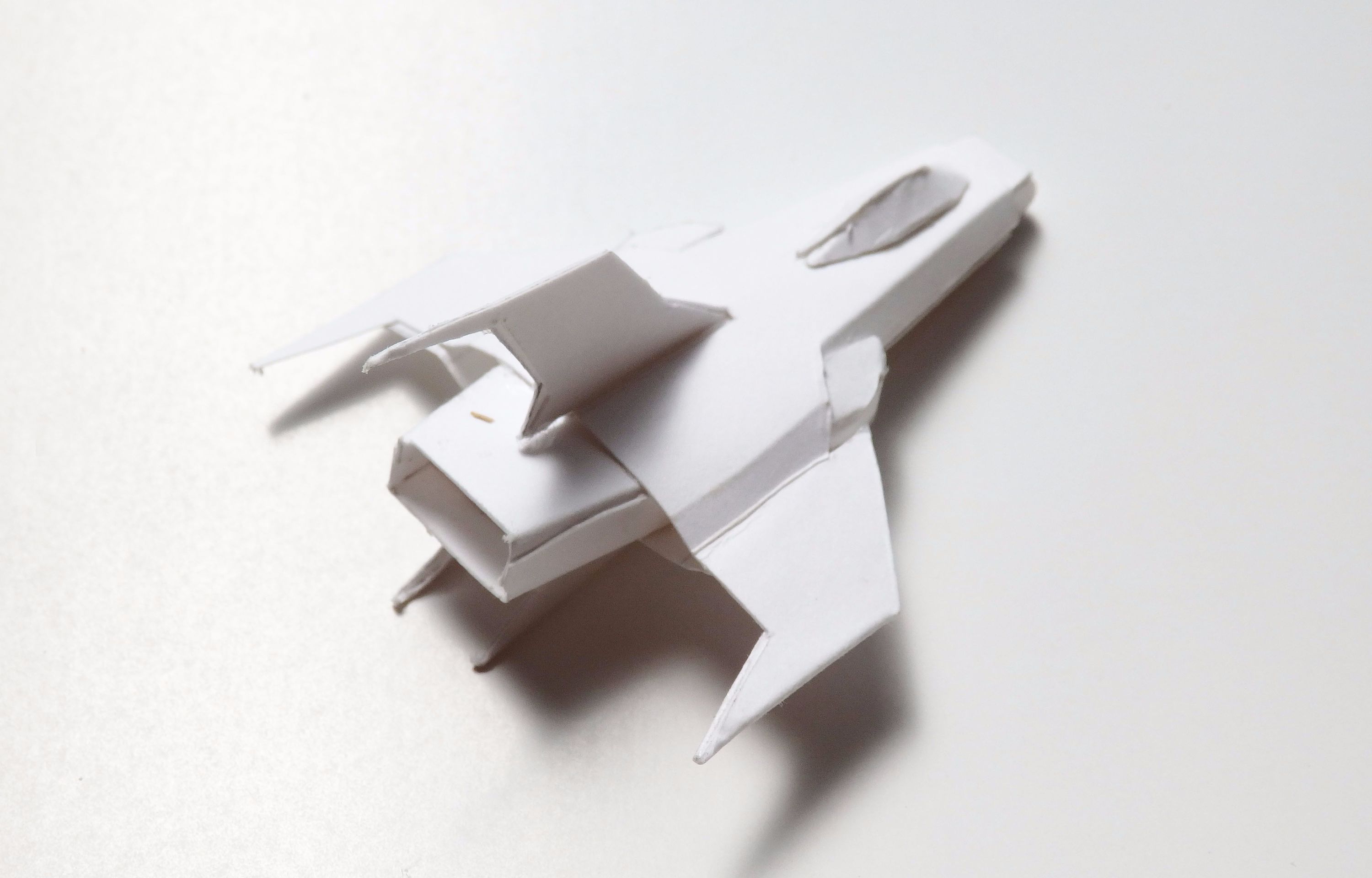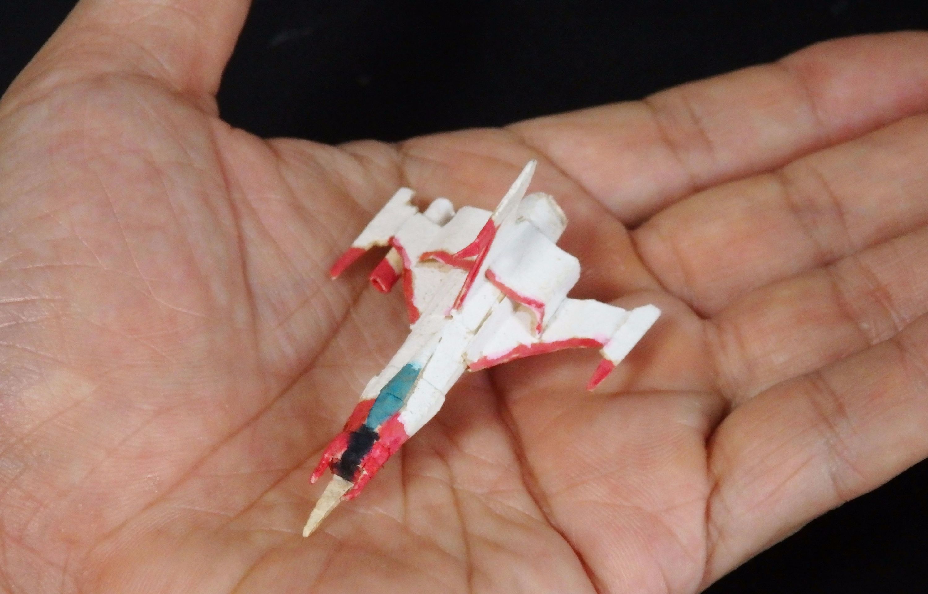 私が中学生3年生だった1978年、映画「さらば宇宙戦艦ヤマト」の公開、洋画では「未知との遭遇」や「STARWARS」が公開され、まさにSFブーム、アニメブームの真っ只中でした。「宇宙戦艦ヤマト」はテレビの再放送もあり、アニメの設定資料が載った本も各種発行され、それらに刺激を受け、紙でアニメに登場する戦闘機を作りました。手のひらに乗るくらいの大きさの物が欲しいという思いだけで作っていたと思います。今あらためてそれらの作品を見てみると、中学3年生で「良く作ったな!」と感心します。そういえばあの頃は、世の中のおもちゃになければ自分で作ろうと、何でも紙で作っていたように思います。2016年のこの歳になって、あらためて紙でできる表現の可能性について、深く掘り下げてみたくなりました。