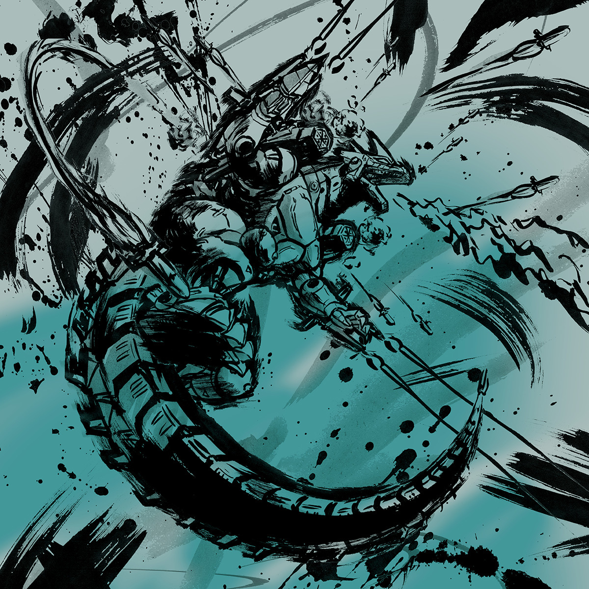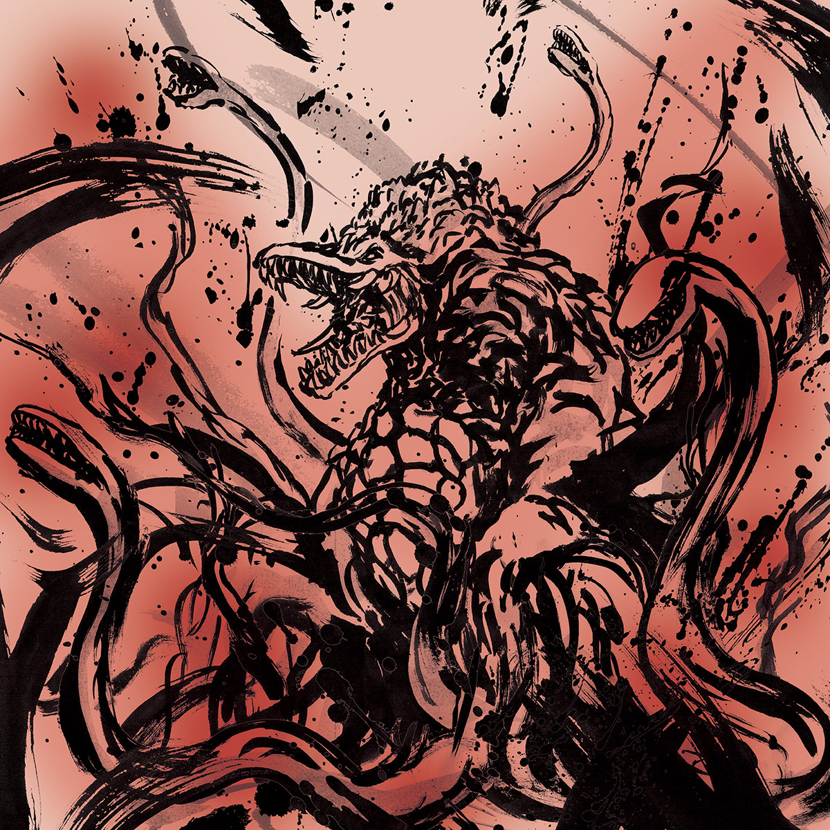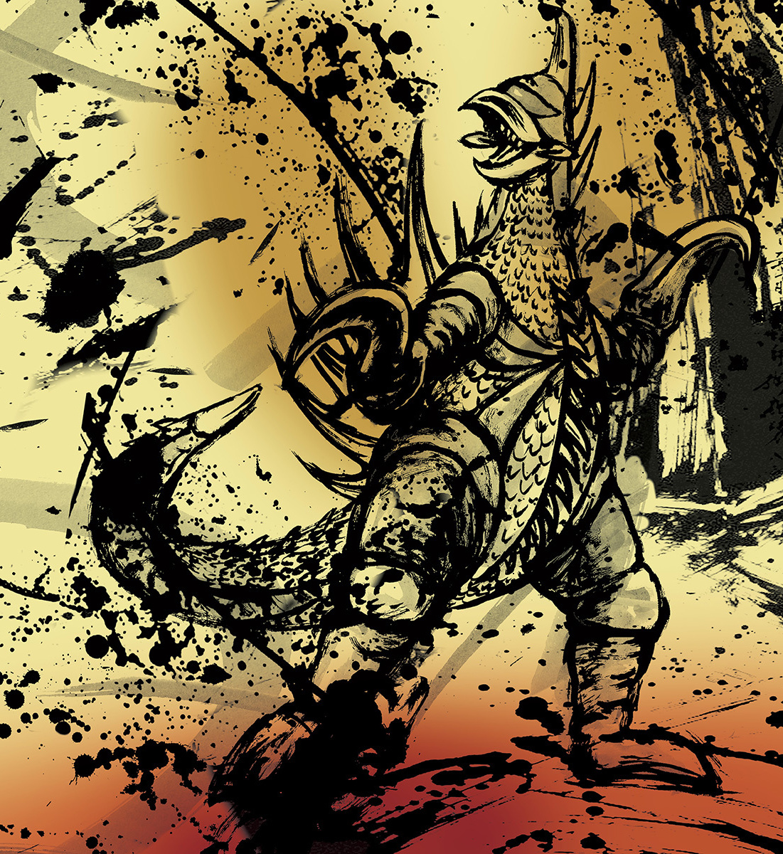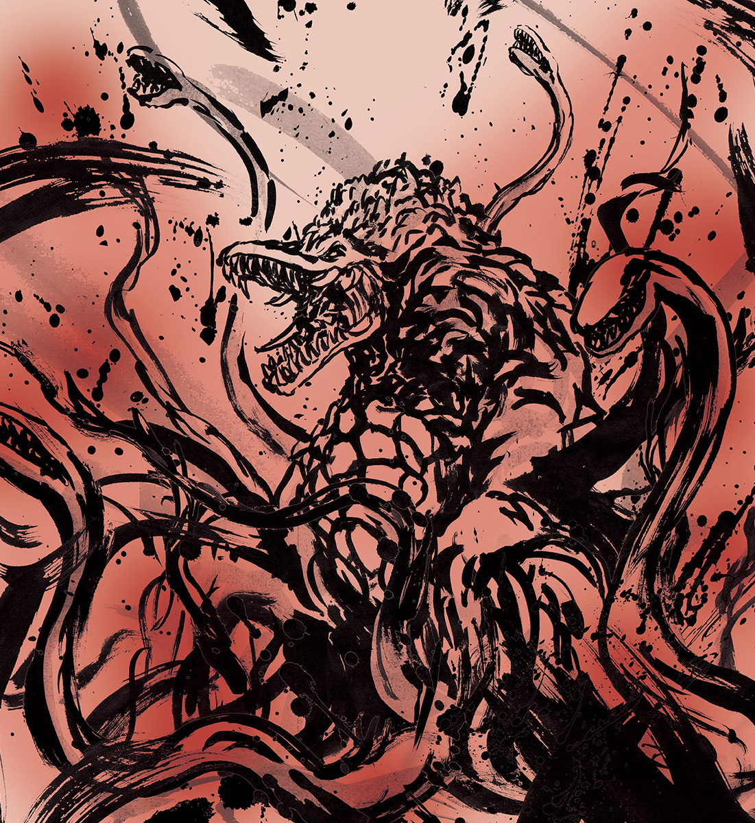 兵庫県立淡路島公園アニメパーク「ニジゲンノモリ」の新アトラクション『ゴジラ迎撃作戦 ~国立ゴジラ淡路島研究センター~ 』内で販売される商品に使用される怪獣の墨絵イラスト。(墨絵イラストのみ作製、パッケージデザインは㈲トレスアミーゴス様)