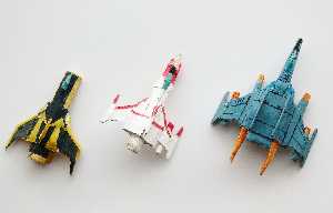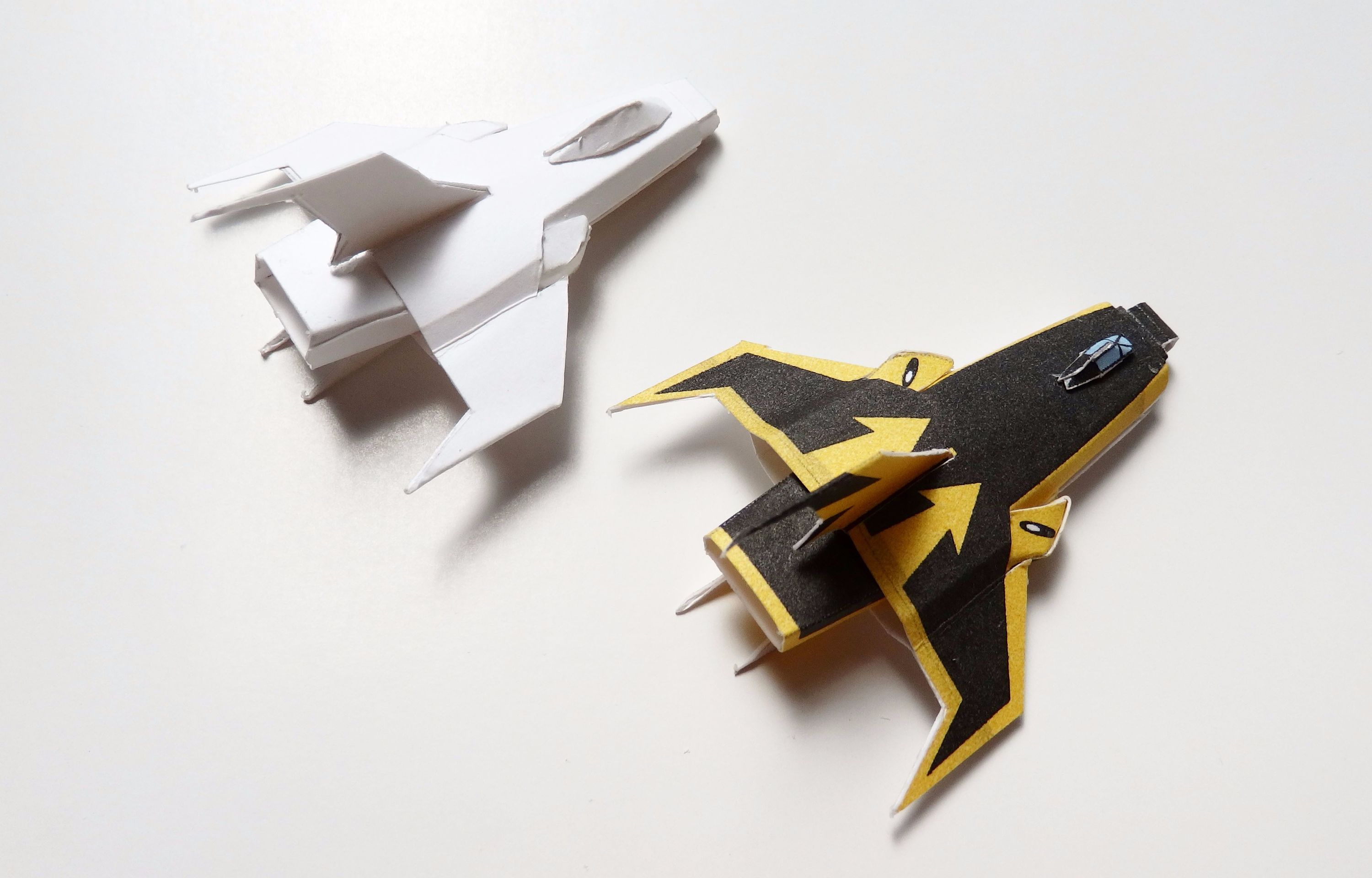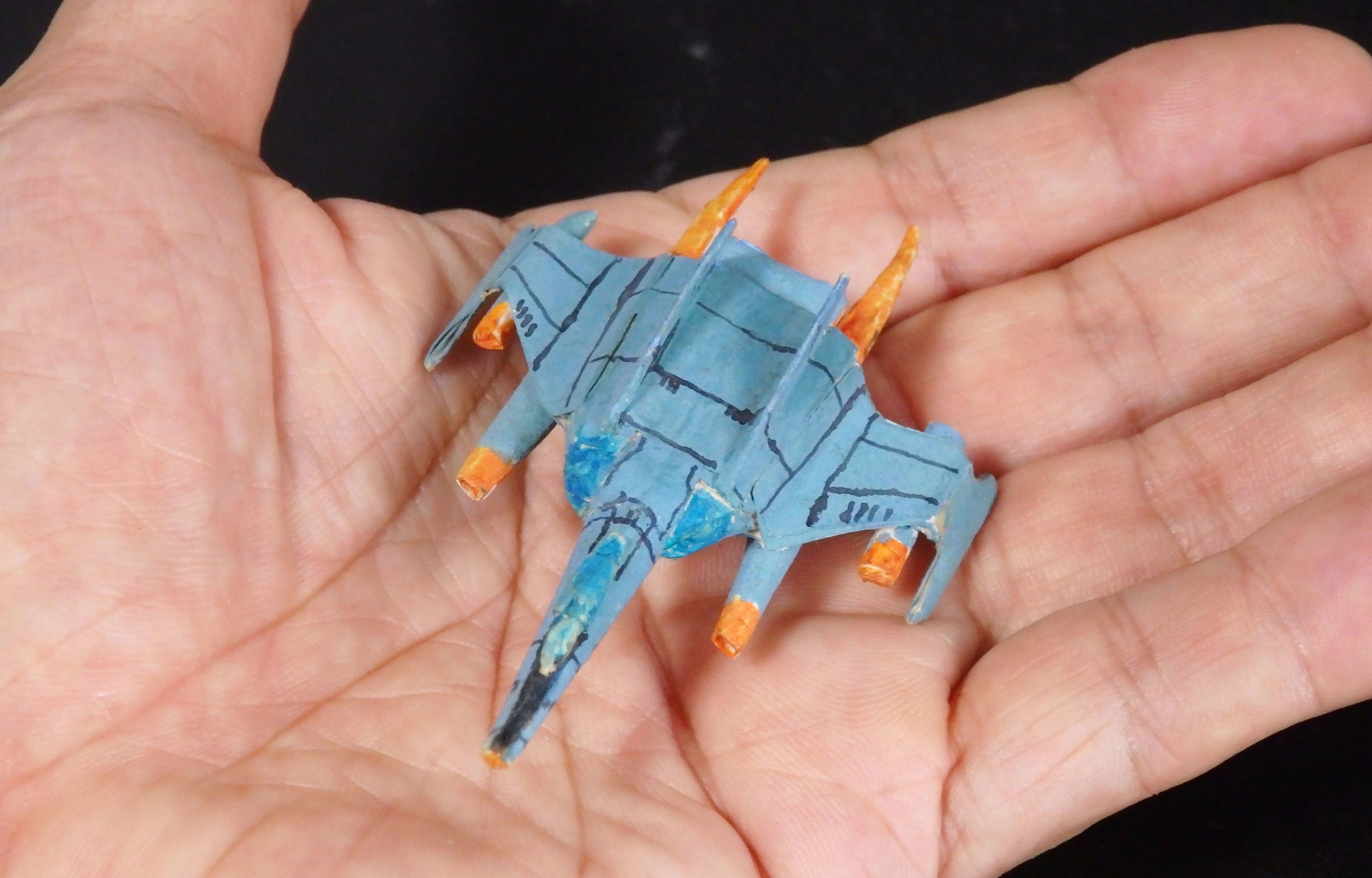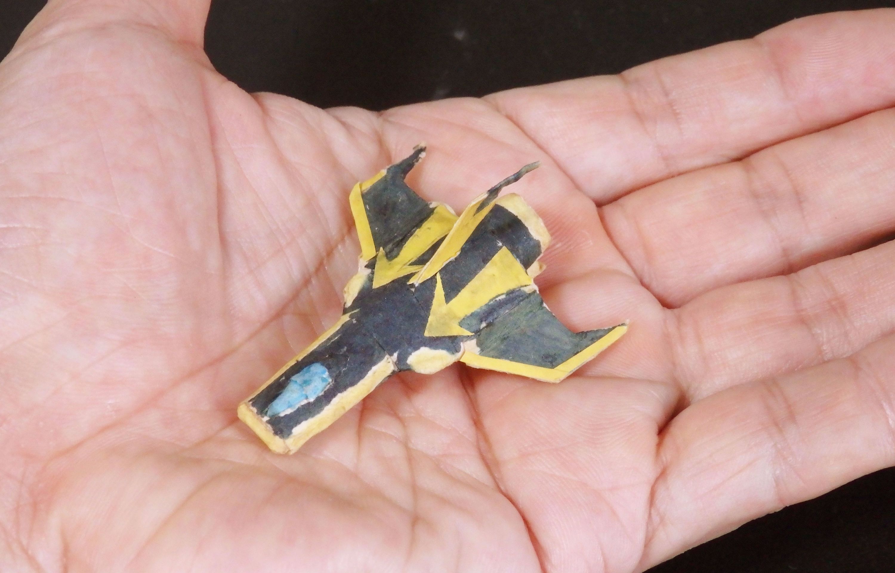 私が中学生3年生だった1978年、映画「さらば宇宙戦艦ヤマト」の公開、洋画では「未知との遭遇」や「STARWARS」が公開され、まさにSFブーム、アニメブームの真っ只中でした。「宇宙戦艦ヤマト」はテレビの再放送もあり、アニメの設定資料が載った本も各種発行され、それらに刺激を受け、紙でアニメに登場する戦闘機を作りました。手のひらに乗るくらいの大きさの物が欲しいという思いだけで作っていたと思います。今あらためてそれらの作品を見てみると、中学3年生で「良く作ったな!」と感心します。そういえばあの頃は、世の中のおもちゃになければ自分で作ろうと、何でも紙で作っていたように思います。2016年のこの歳になって、あらためて紙でできる表現の可能性について、深く掘り下げてみたくなりました。